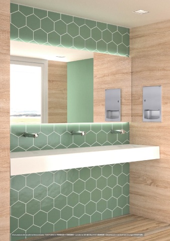 Misturadora de lavatório temporizada TEMPOMIX 3 794012 + 794055 - Lavatório MINERALCAST 454120 - Dispensador de toalhas de papel 510712S