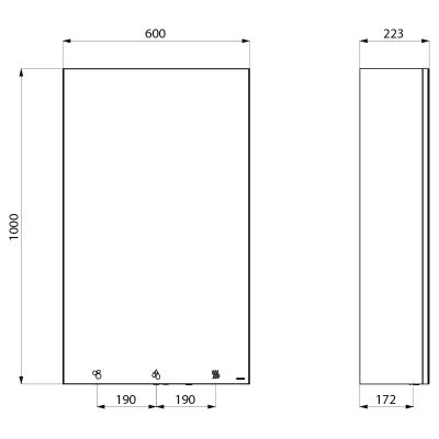Espelho de vidro com 4 mm de espessura e pictogramas luminosos.