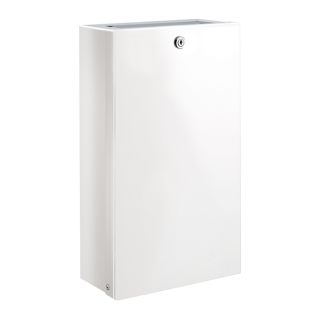 Papeleira inox retangular mural com tampa e fechadura, 16 litros