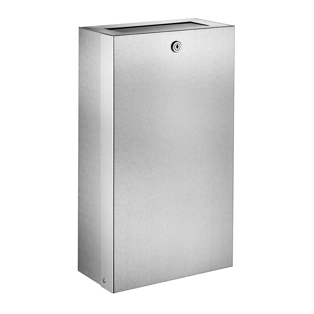 Papeleira inox retangular mural com tampa e fechadura, 16 litros