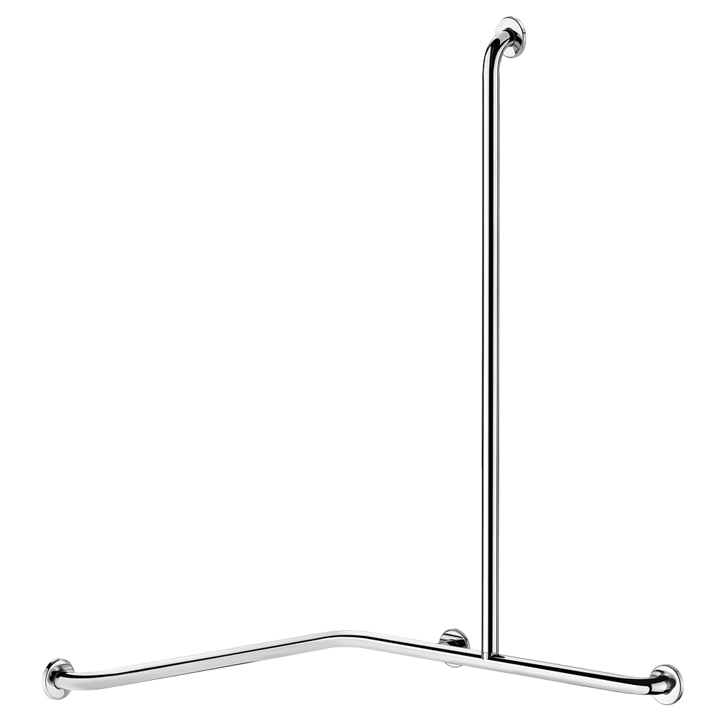 Ref. 5481DP2Barra de apoio angular 2 paredes com barra vertical Ø 32, para pessoas com mobilidadereduzida (PMR).