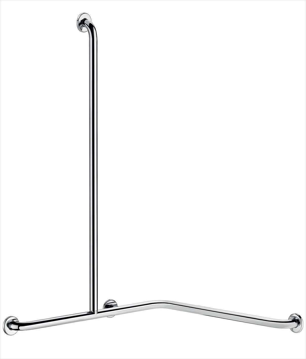 Ref. 5481GP2Barra de apoio angular 2 paredes com barra vertical Ø 32, para pessoas com mobilidadereduzida (PMR).
