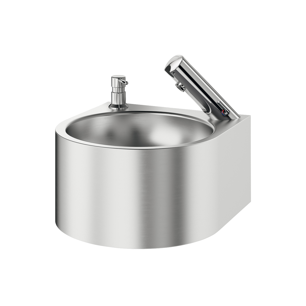 Ref. 184310Lava-mãos de fixação mural com comando eletrónico.