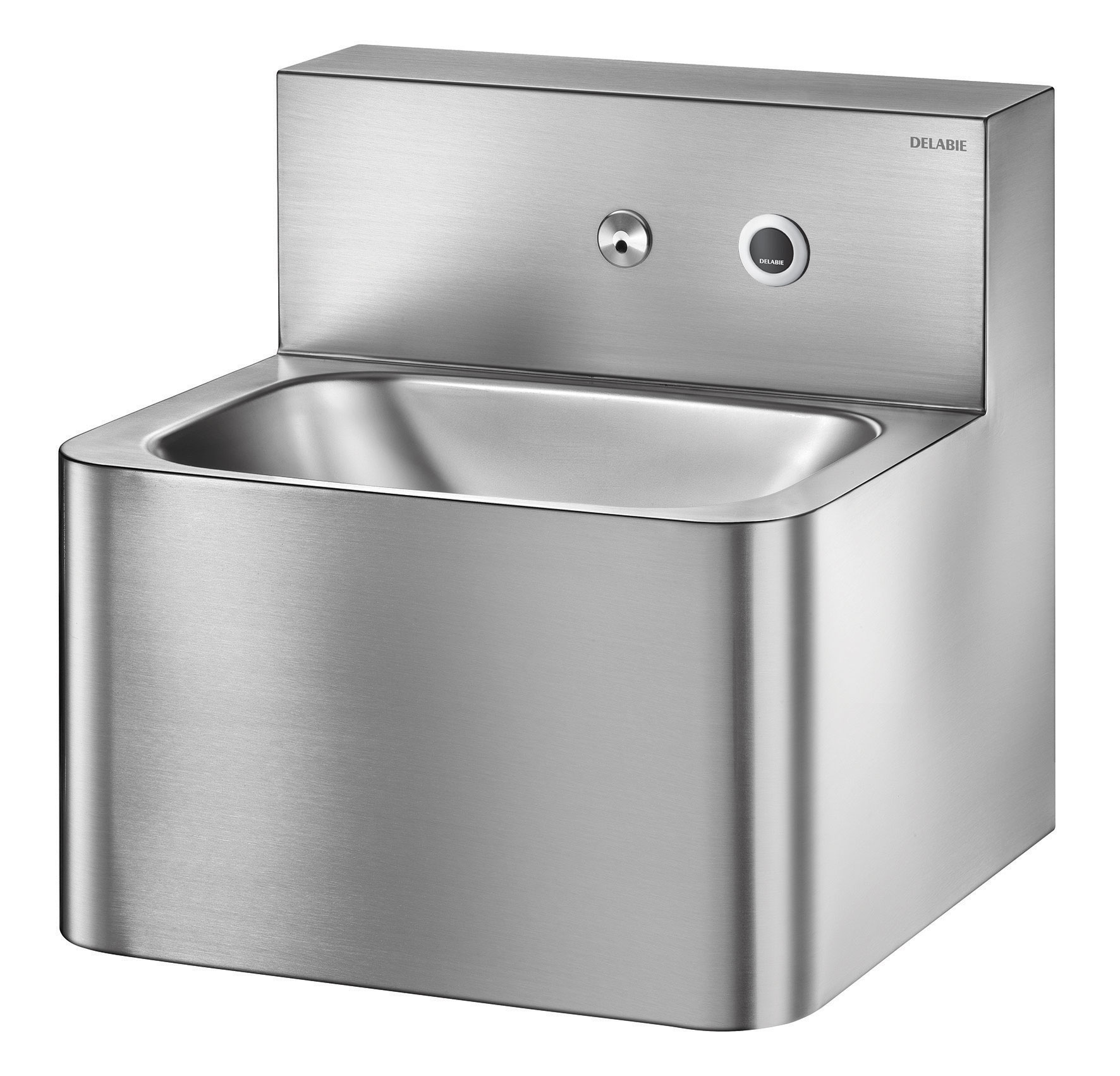Fornecido com uma torneira eletrónica: débito pré-regulado a 3 l/min, detetor de presença infravermelhos, limpeza periódica parametrizável, alimentação por corrente 230/12 V.