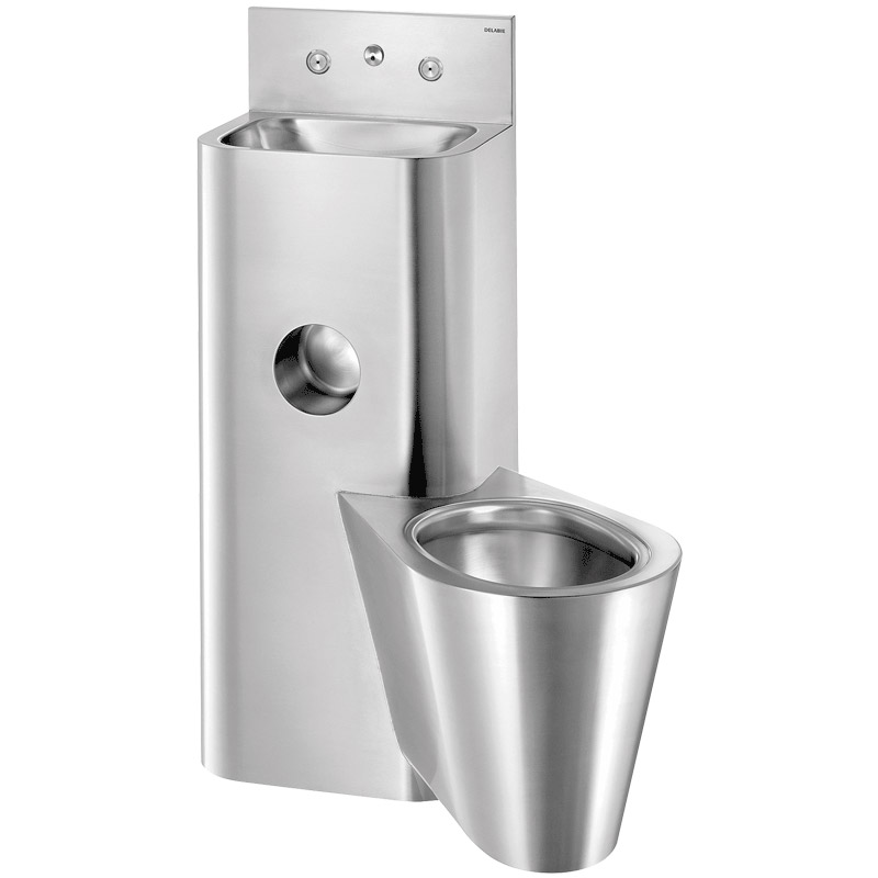 A sanita é completamente soldada ao lavatório, sem parafusos : para facilitar a limpeza e impedir a ocultação de objetos.