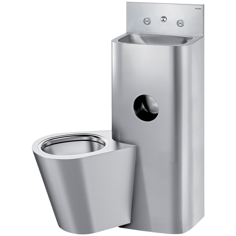 A sanita é completamente soldada ao lavatório, sem parafusos : para facilitar a limpeza e impedir a ocultação de objetos.