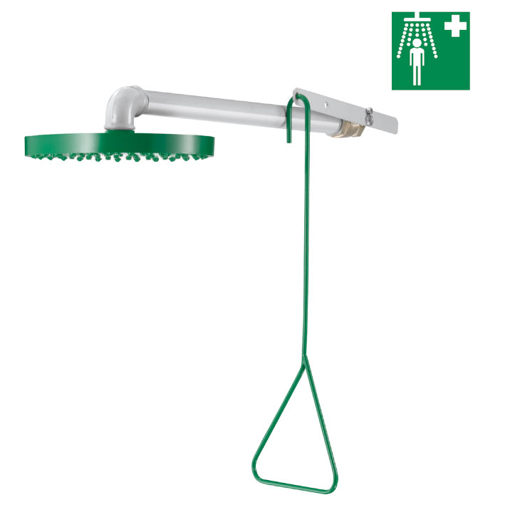 Ref. 9108Duche de emergência mural encastrado com comando manual, equipado com: