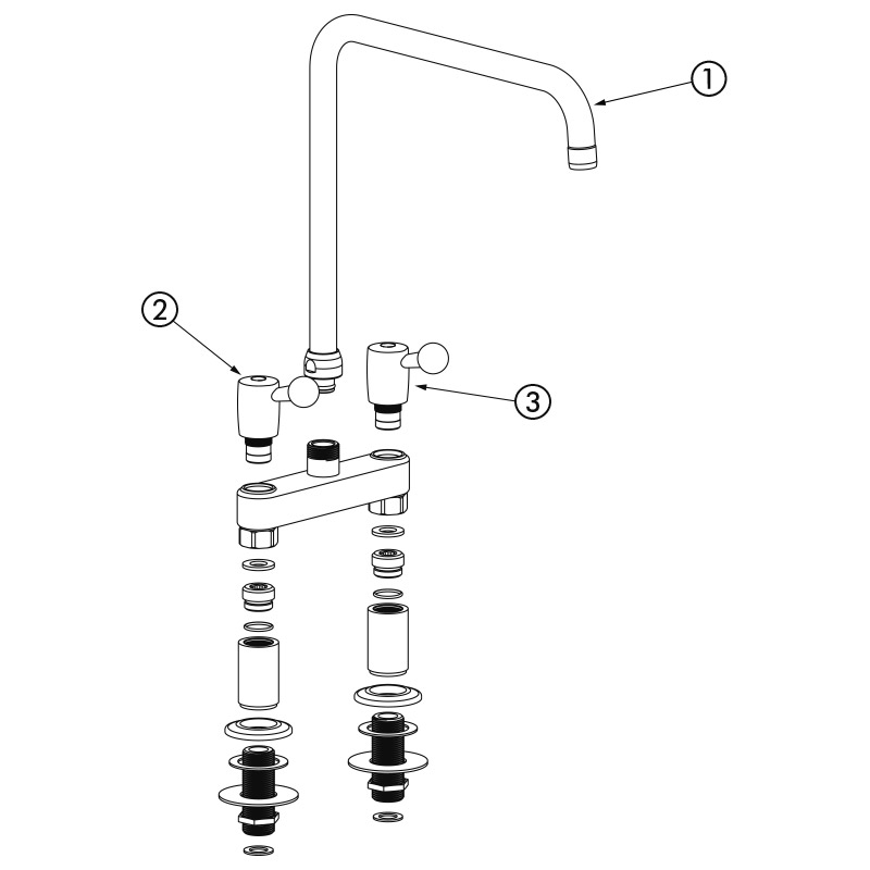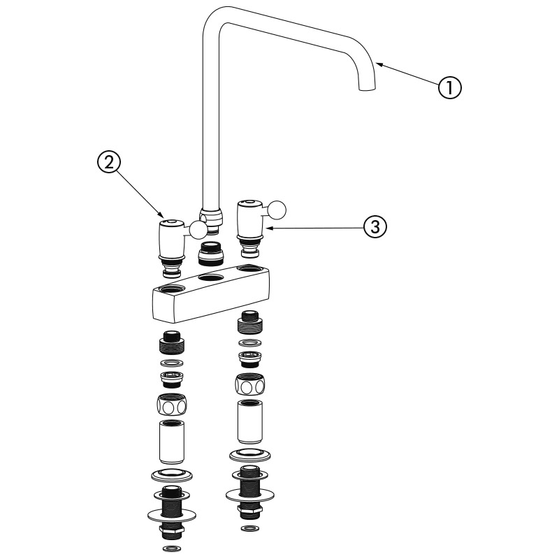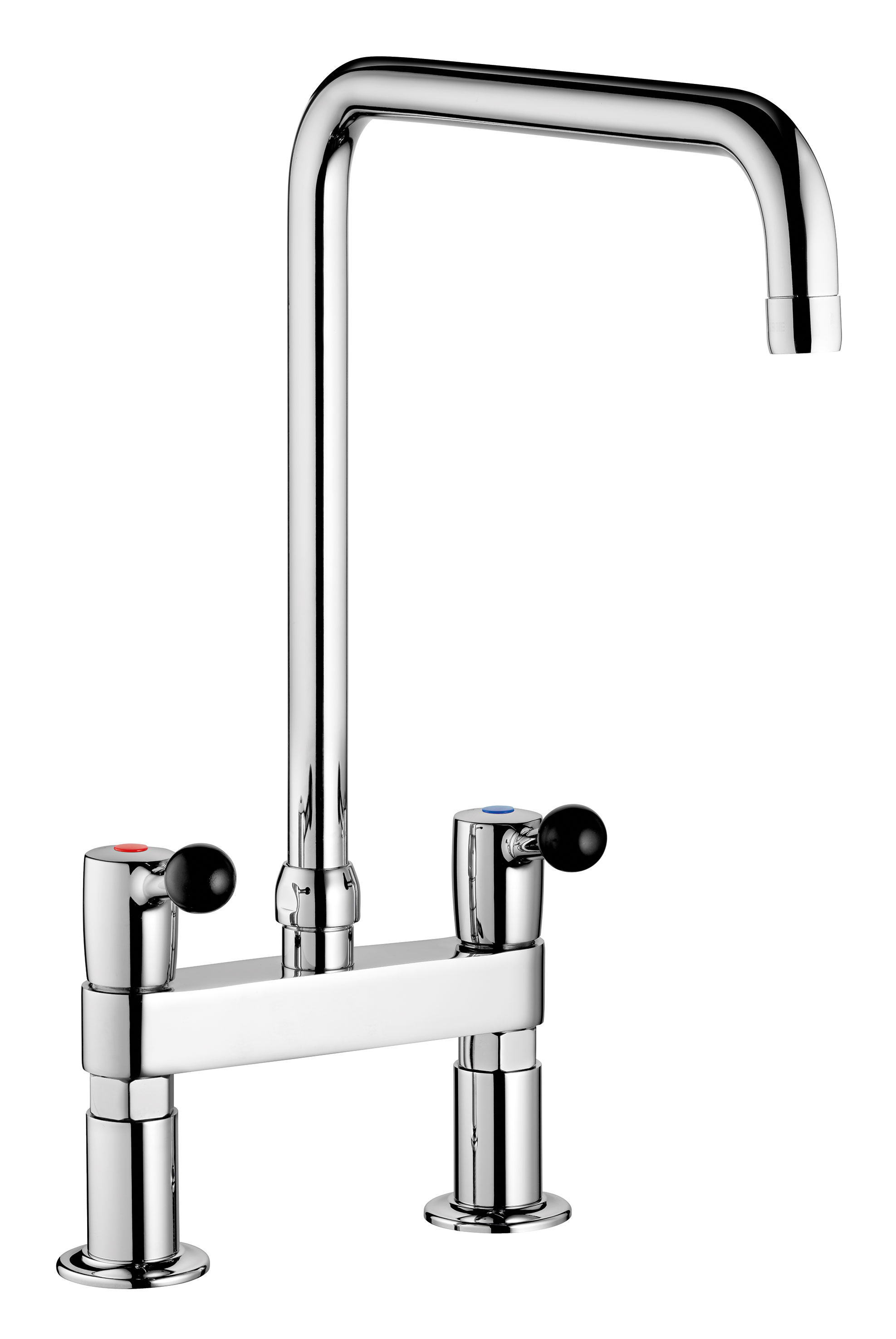 Ref. 5603Misturadora 2 furos de bancada M3/4" entre-eixos 150 mm sobre colunas retas para grandes cubas.