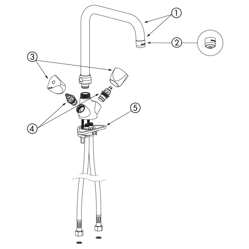 Misturadora para lava-louças e grandes cubas com bica tubo orientável H.190 L.200.