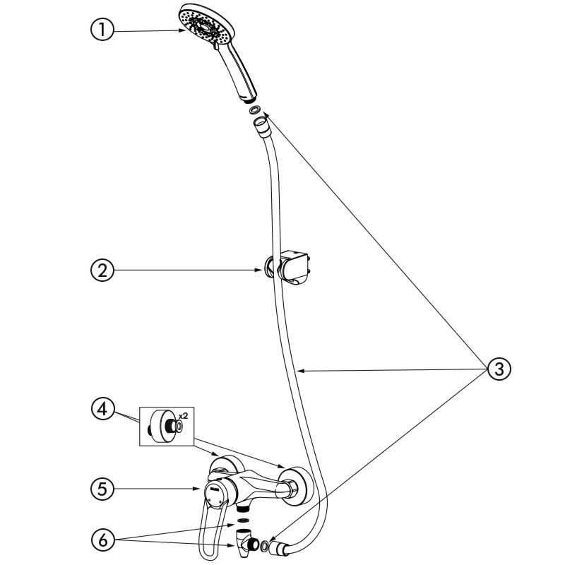 Conjunto de duche particularmente adaptado para os estabelecimentos de cuidados de saúde, lares, hospitais e clínicas.