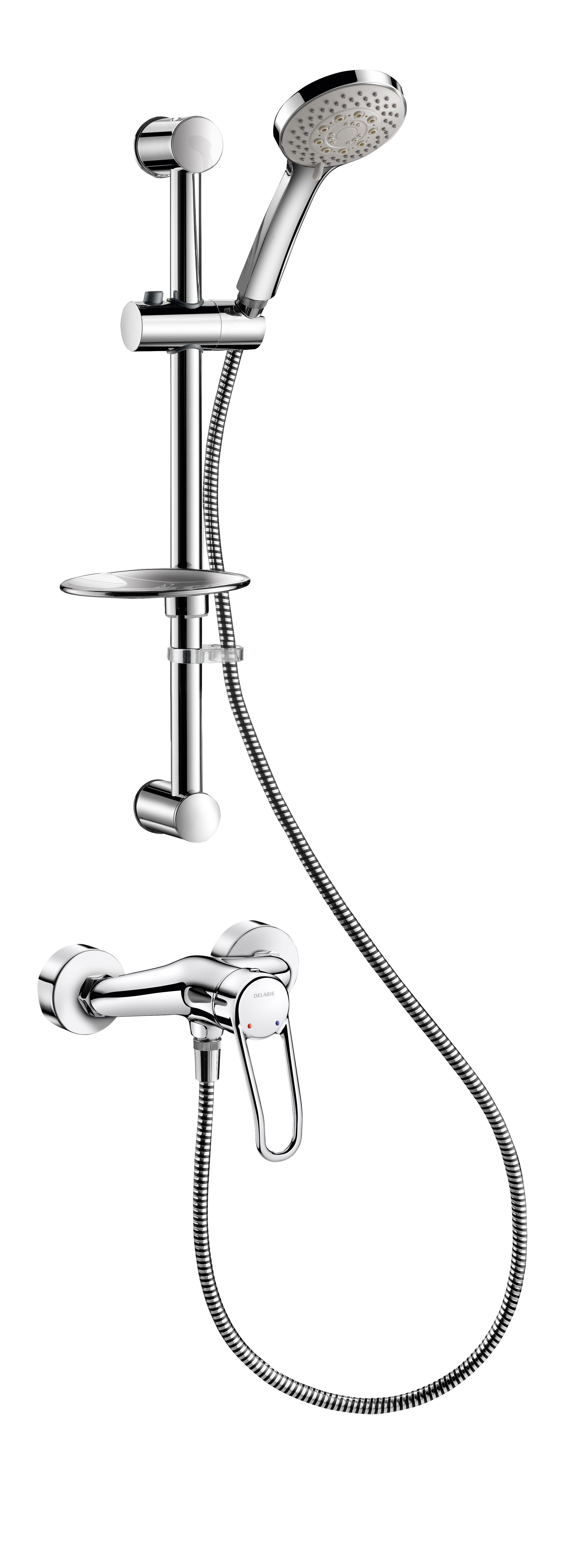 • Chuveiro deslizante (ref. 813) sobre barra cromada (Ref. 821) com saboneteira e flexível (ref. 834T1).