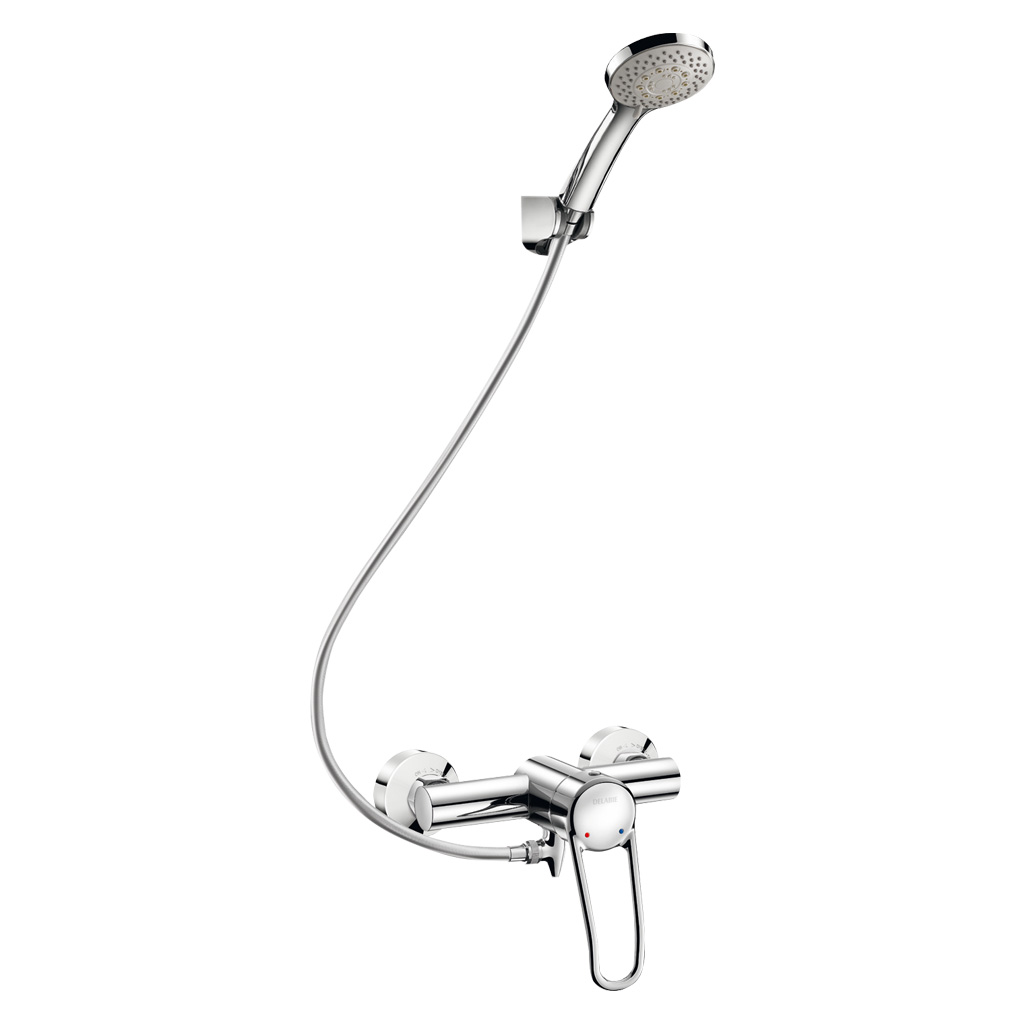 Ref. 2739EPHYGConjunto de duche com misturadora mecânica mural monocomando.