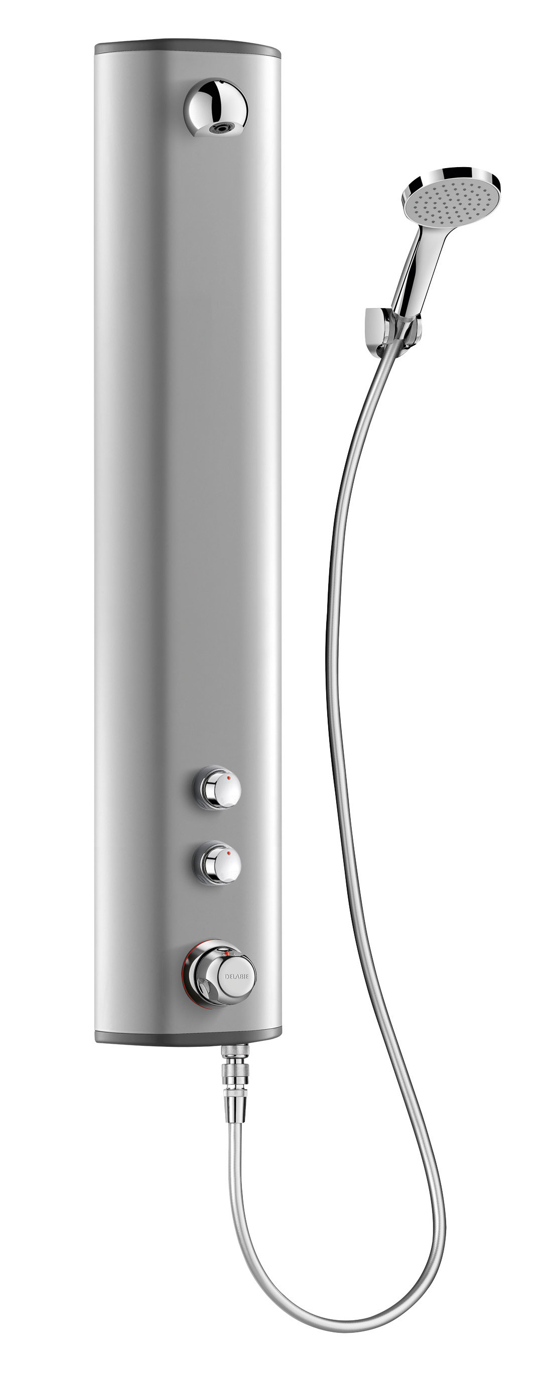 Chuveiro com flexível amovível por ligação rápida STOP e suporte mural fornecido.