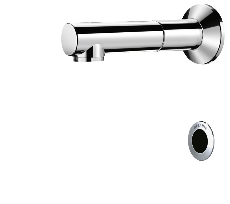 Torneira eletrónica, particularmente adequada para estabelecimentos de cuidados de saúde, lares, hospitais e clínicas.
