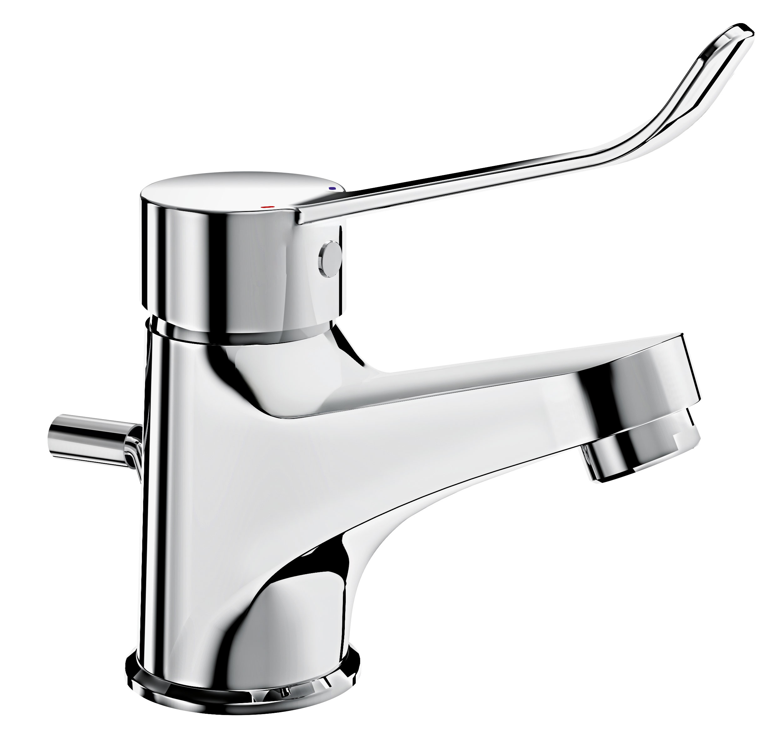 Misturadora monofuro adaptada para pessoas com mobilidade reduzida (PMR).