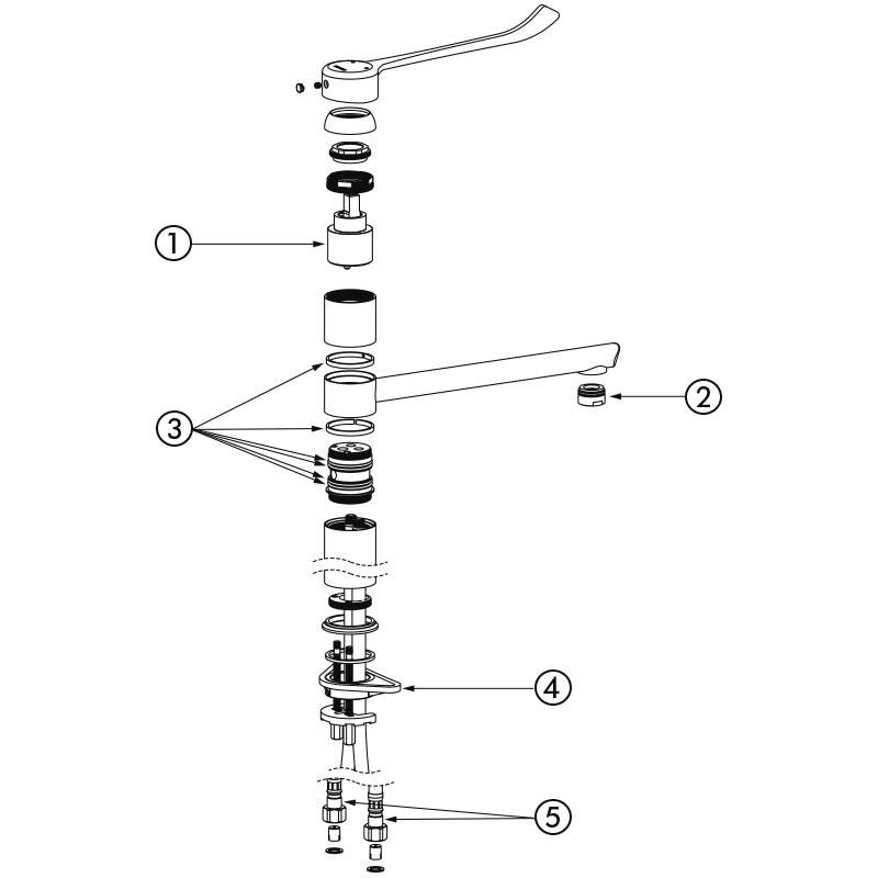 Misturadora alta com quebra-jatos higiénico adaptada para a colocação de um filtro terminal BIOFIL.