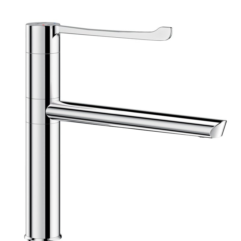 Misturadora alta com saída BIOSAFE higiénica adaptada para a colocação de um filtro terminal BIOFIL.