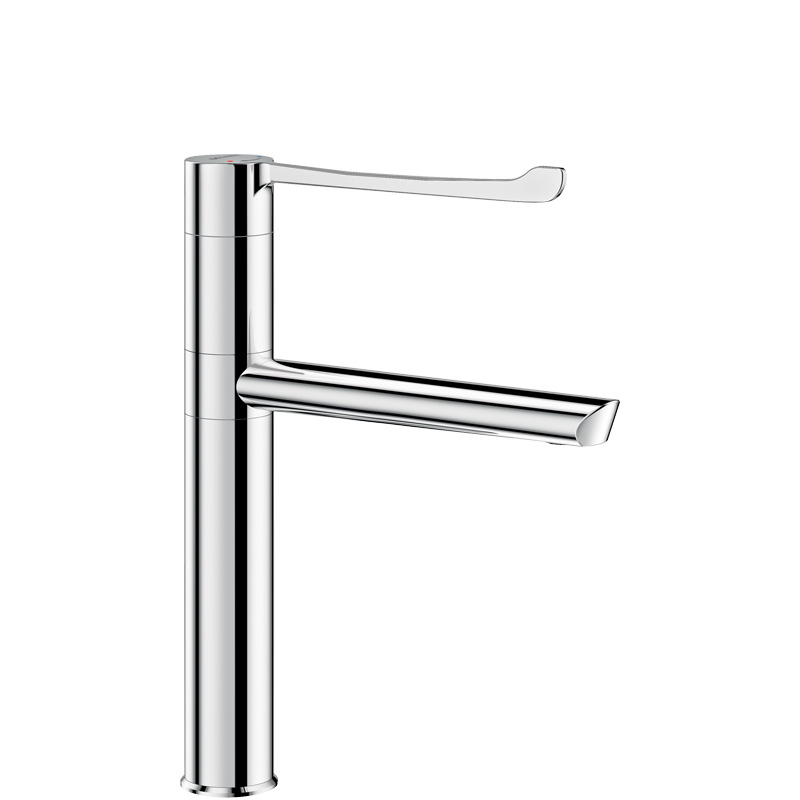 Misturadora alta com saída BIOSAFE higiénica adaptada para a colocação de um filtro terminal BIOFIL.