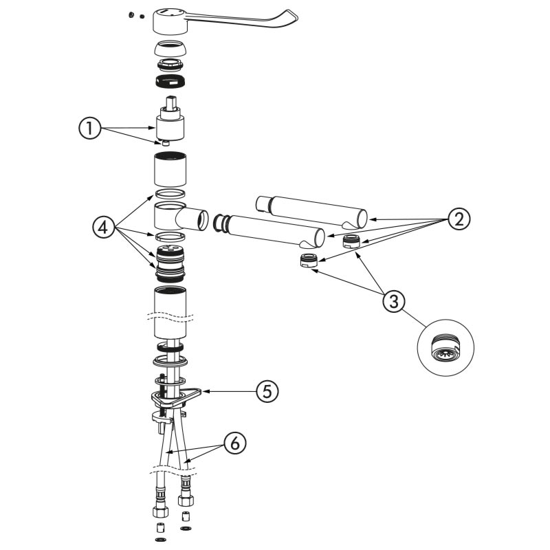 Misturadora particularmente adaptada para os estabelecimentos de cuidados de saúde, lares, hospitais e clínicas.