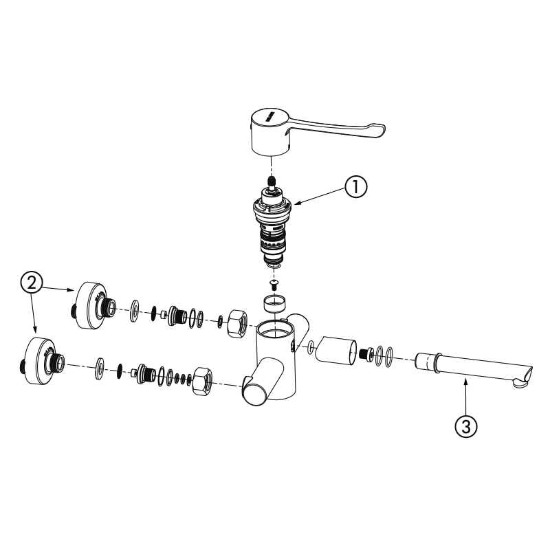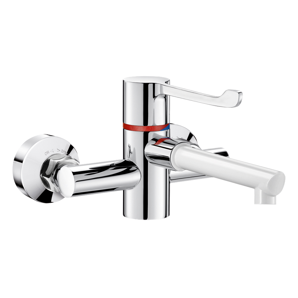 Misturadora termostática particularmente adaptada para estabelecimentos de cuidados de saúde, lares, hospitais e clínicas.