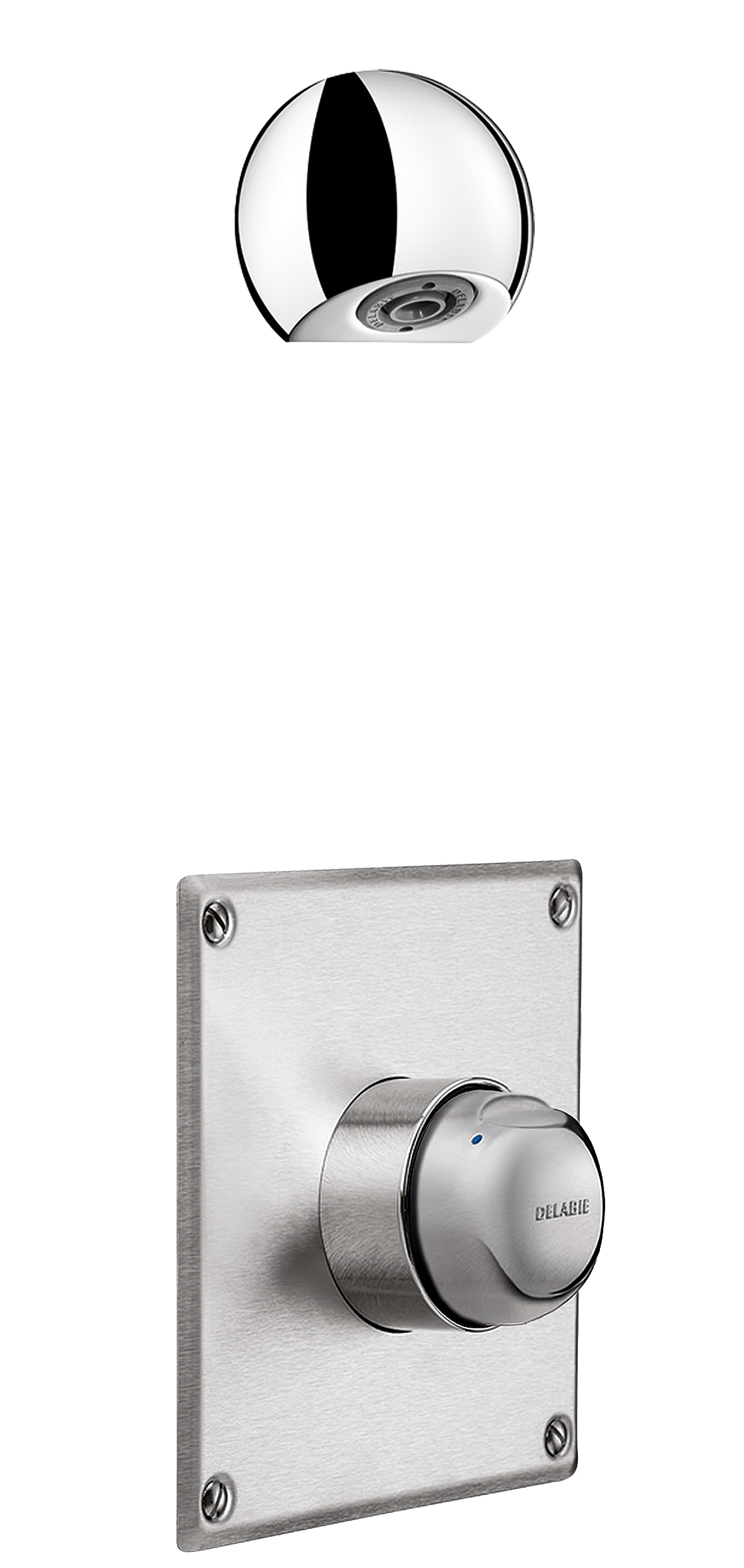 Chuveiro de duche ROUND cromado, inviolável e anticalcário com regulação automática de débito.