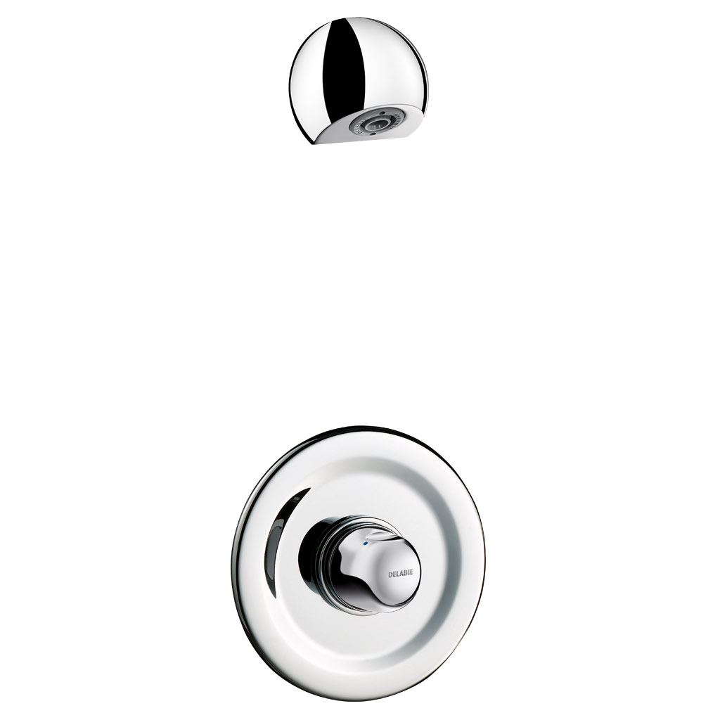 Chuveiro de duche ROUND cromado, inviolável e anticalcário com regulação automática de débito.