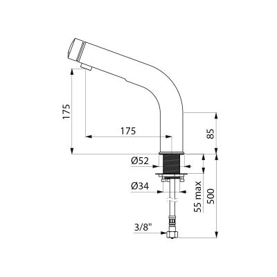 Corpo de inox cromado, altura de 170 mm para lavatório semi-encastrado.