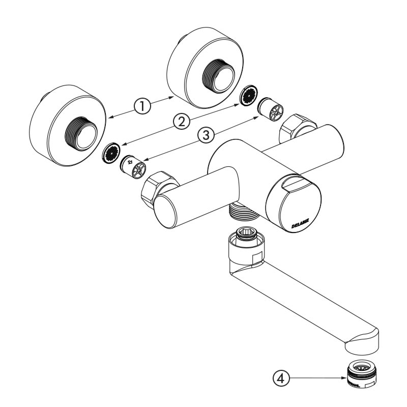 Ligações excêntricas M1/2” para entre-eixos de 130 a 170 mm.