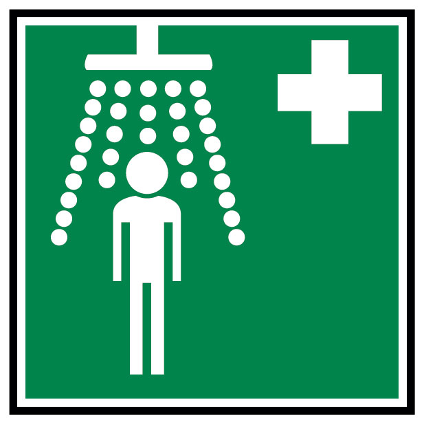 Placa sinálética para duche de emergência